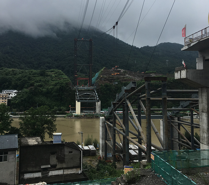 湖北長陽清江特大橋全長354.8m,主橋為320m飛燕式鋼桁架系桿拱橋,采用2*80噸纜索吊機安裝,主拱于2021年1月14日合龍。