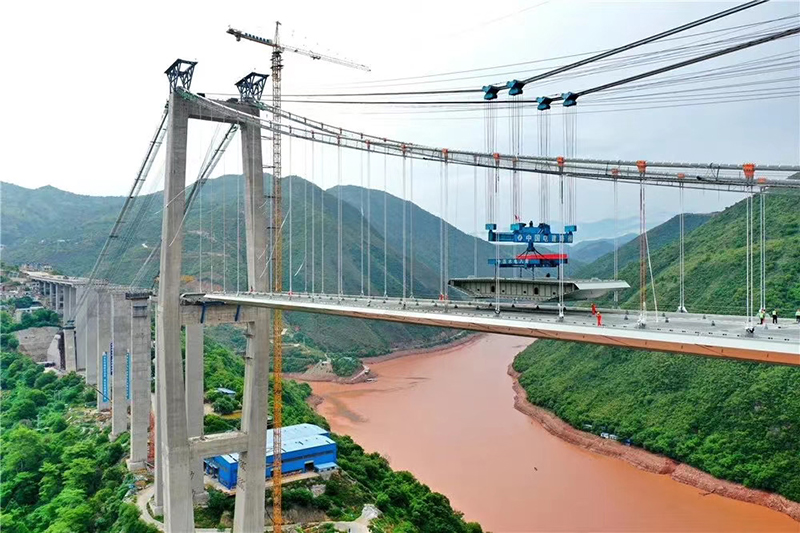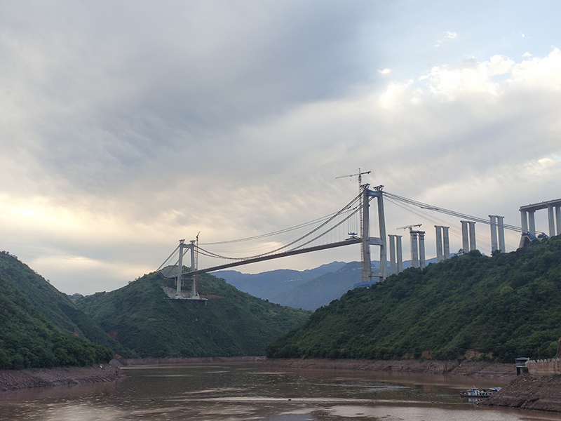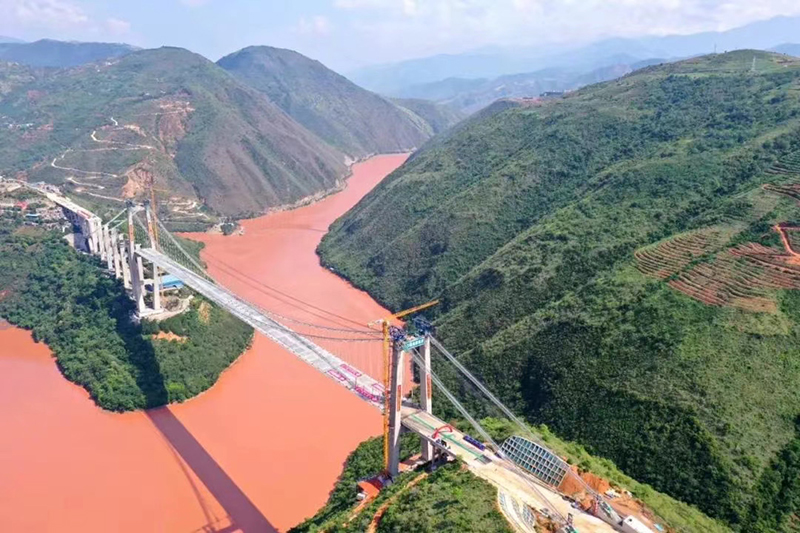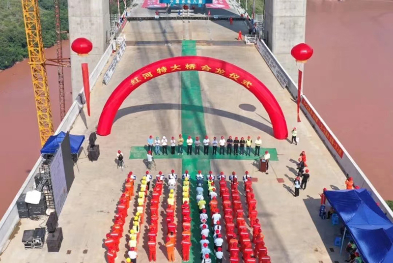 紅河全長(zhǎng)1280公里,是一條跨越中國(guó)和越南的國(guó)際河流。紅河特大橋?yàn)榭缭郊t河南沙水庫而建,是我國(guó)首座跨越紅河的高速公路懸索特大橋,大橋全長(zhǎng)1366米,其中建水岸引橋長(zhǎng)580米,元陽岸引橋長(zhǎng)80米,主跨長(zhǎng)700米。庫區(qū)水面距橋面高達(dá)184米,建水側(cè)主塔高181.29米,元陽側(cè)主塔高122.5米。2020年9月5日,紅河特大橋主跨成功合龍,標(biāo)志著全線工程建設(shè)取得重大節(jié)點(diǎn)性勝利。